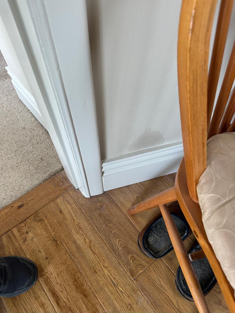 Experience was essential to diagnose this problem, what may have been mistaken as a failed damp proof course, turned out to be nothing more than plaster bridging (this occurs when wall plaster is continuous between a solid or concrete floor and a wall), which we suspected, due to the depth of the skirting board. When the skirting board was removed this was confirmed to be the case, as we found the original slate damp proof course. This is an example of how incorrect diagnosis can lead to un-necessary expenditure.